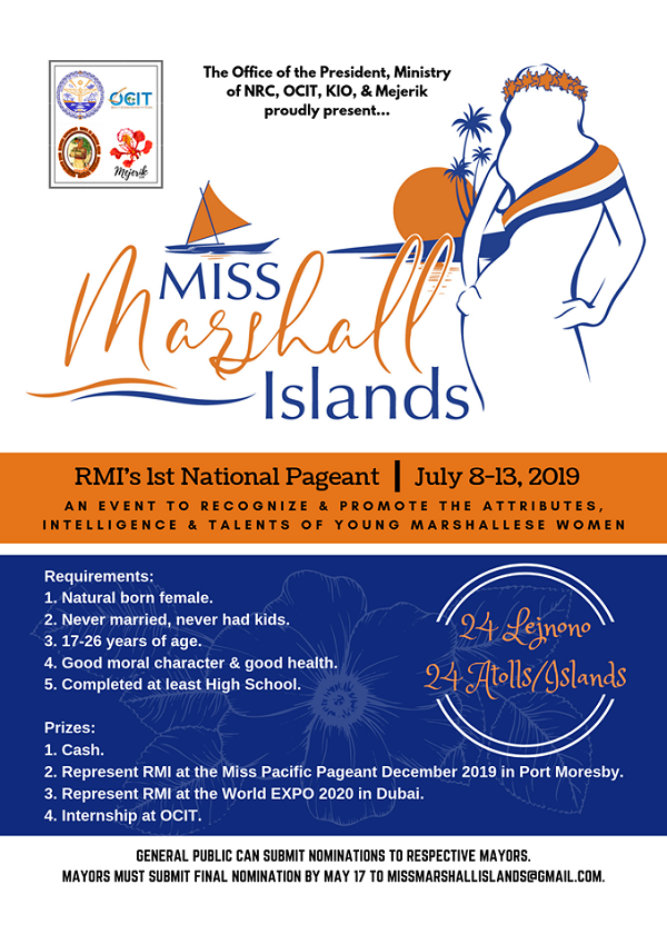 The Miss Marshall Islands Pageant was initiated primarily by the Office of Commerce, Investment, and Tourism with its core goal to put Marshall Islands destination on the map.