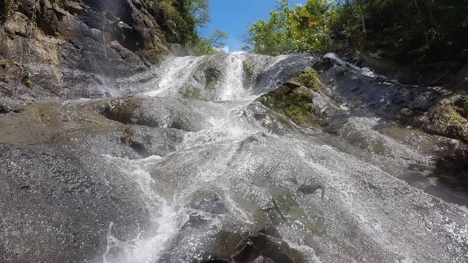 We traverse a long steep and grassy ridge in western Guam to a large and picturesque waterfall. There are several smaller falls and swimming spots along the way.